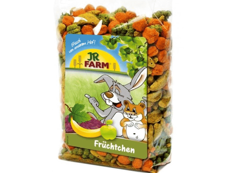 JR FARM Baby Frugter er en farverig gnavergodbid til kaniner.