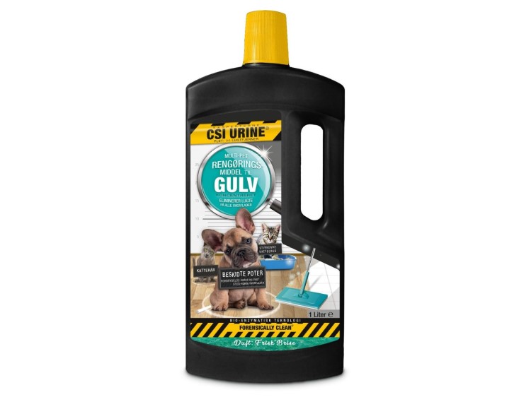 Alle elsker hunde, katte og kaniner i deres hjem, men ingen bryder sig om det skidt og den lugt, som vi og vores elskede venner efterlader. CSI URINE® Multi-Pet gulv- og overfladekoncentrat er ikke et almindeligt rengøringsmiddel, men specielt udviklet til hjem med kæledyr. Fjerner effektivt fod- og potespor, urinpletter, fedtpletter, skæl og skidt fra pelsen, spildte madrester, støv, sæberester, kalkpletter osv. Kort sagt alt det, der samler sig i løbet af hverdagen og efterlader snavs og lugte.