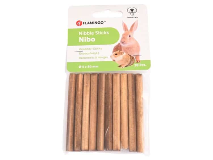 Flamingo Naturlige Nibo Tyggepinde er 100% naturlige til kaniner. Sikre et naturligt tandslid og en god aktivering.