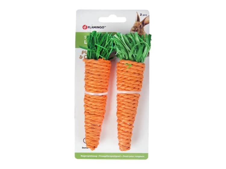 Flamingo Sisal Gulerødder er perfekt stimulerende gnavelegetøj til kaniner.