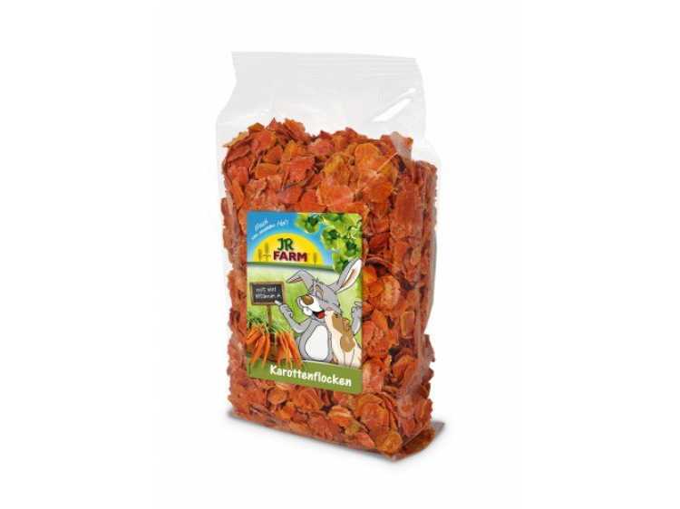 JR Farm Gulerodsflager – Omhyggeligt tørrede og dampede gulerodsflager, som har en høj procentdel af de naturlige vitaminer og essentielle betacaroten, som bevares.