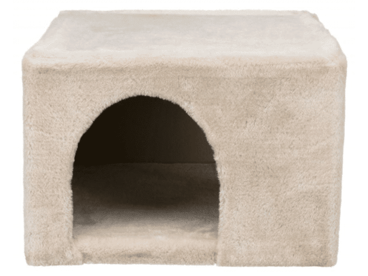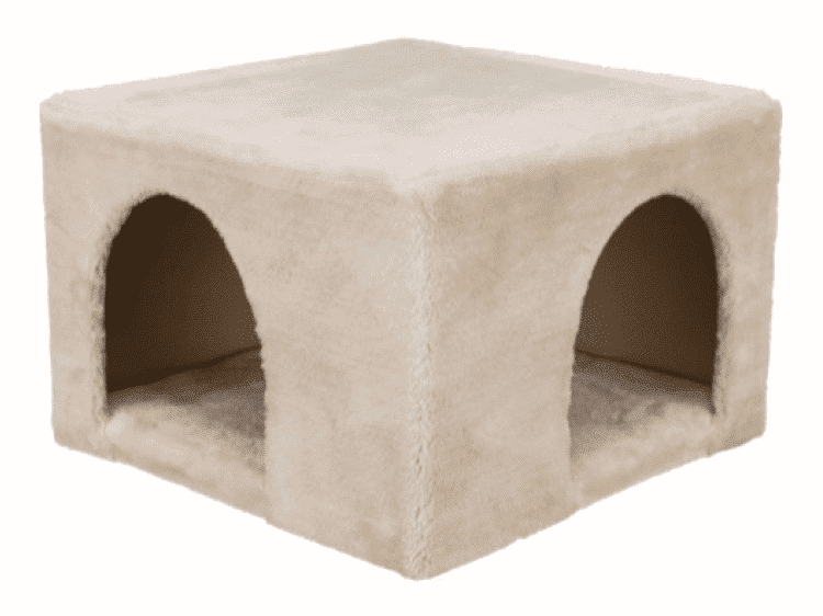 Trixie hyggehule i plys til kaniner lavet i blødt plys, hulen har 2 ind/udgange samt en liggeplads på toppen af hulen. puden inden i er polstret, så den er ekstra blød at ligge på.