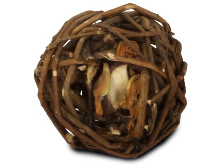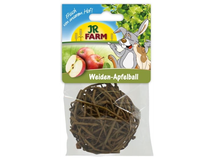 JR Farm Fletbold m. Æblestykker er fremstillet af pileflet og indeholder lækre stykker af tørret æble som din kanin skal arbejde for at få ud. Her er beskæftigelse til lang tid og når din kanin har fået alle sine godbidder ud, kan du selv fylde bolden igen med nogle af JR Farms mange snacks. Bolden er lavet af pil, så den er også fuld spiselig