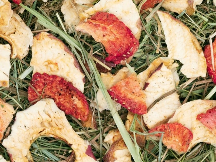 Hø tjener som ernæringsgrundlag for kaniner. Dens høje råfiber indhold understøtter den vigtige tandafslidning, når den nappes og har samtidig en positiv effekt på dyrenes fordøjelse. Den farverige frugtblanding gør hø bakken til en harmonisk lækkerbisken.