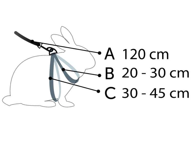 Dette sæt bestående af en behagelig sele og en egnet snor er velegnet til alle kaninarter. De er lavet af robuste materialer og er vandafvisende. Selen er justerbar og derfor let at tilpasse til kaninen. Der er to klikspænder, som giver mulighed for en bekvem og hurtig fastgørelse. Linen er fastsat selen med en krog.