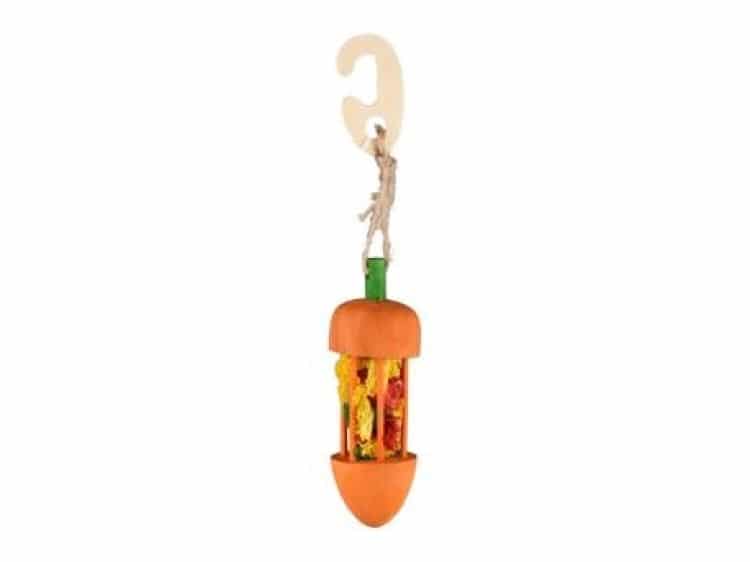 Træ gulerod som er lavet i samme farver som en normal gulerod med fyld. Når indholdet inde i er væk kan man f.eks fylde den med hø.